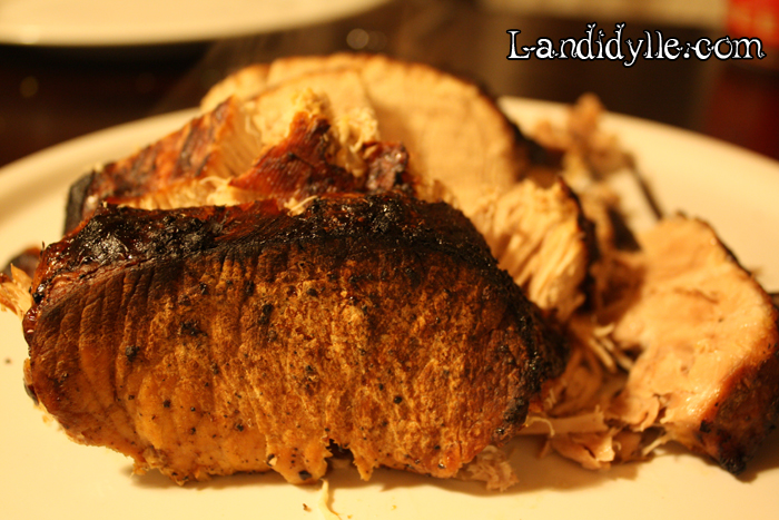 Durch die Marinade und die Zubereitungsart wird dieser Schweinebraten sehr zart, so zart, dass er unter der Gabel zerfällt.