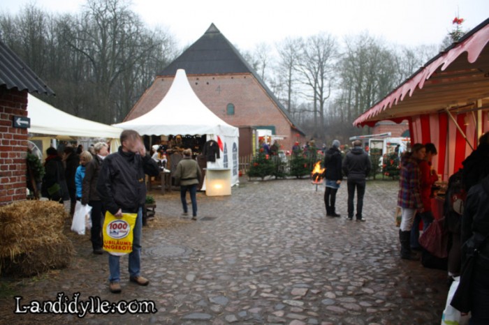 Die gemütliche Atmosphäre der gut gepflegten, historischen Gutsanlage wertet diesen Weihnachtsmarkt auf und man findet an allen Ecken und Enden sehenswerte Details an den Gebäuden. Umgeben von uralten Bäumen, dem Park und eingebettet in die Holsteiner Landschaft ist dieser Markt auf jeden Fall etwas für’s Herz und für’s Auge. Man schreitet (oder rutscht) auf einer alten Allee gepflastert mit Kopfsteinpflaster durch kleine Auwälder auf den historischen Teil des Gutshofs zu. Der Markt findet sowohl auf der Hofstelle, als auch in den Gebäuden statt.