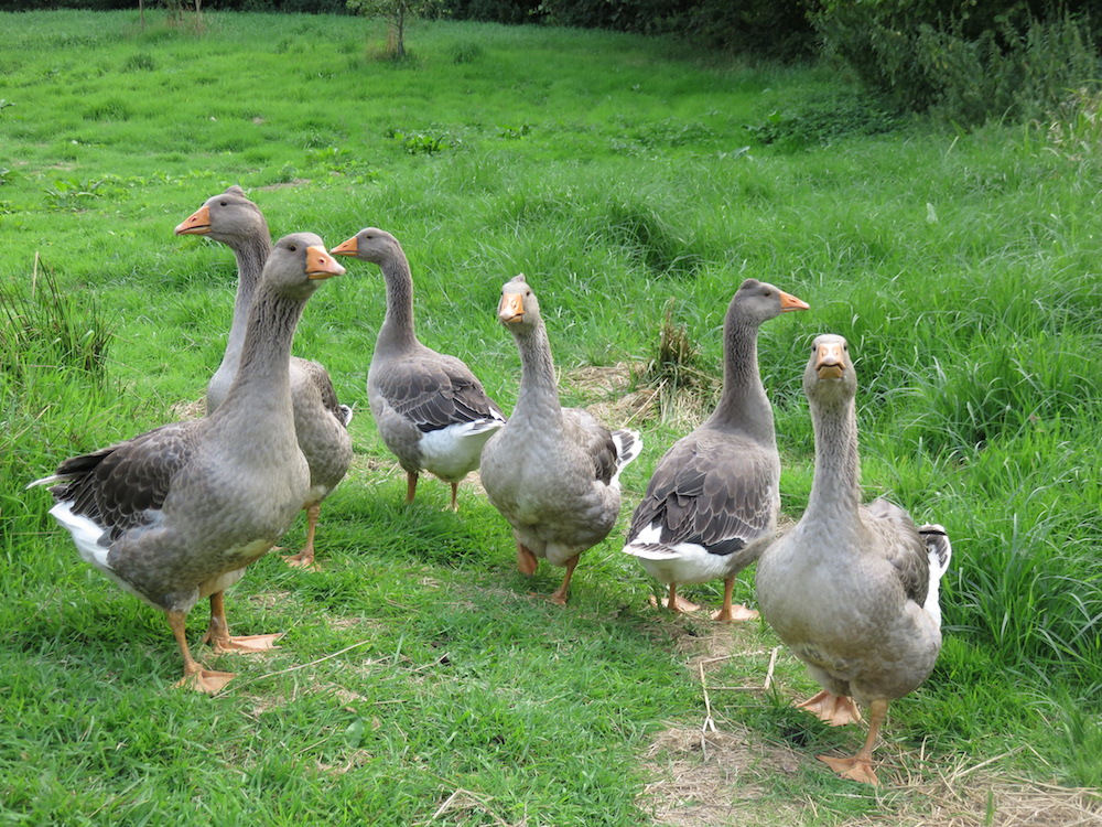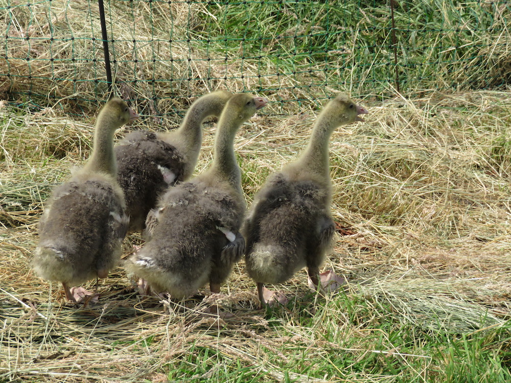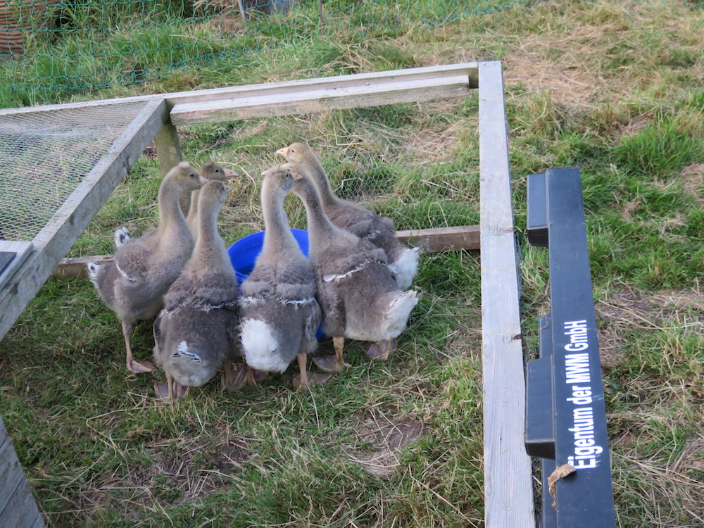 An Pommerngänse zu kommen war dieses Jahr nicht einfach, normalerweise braucht man nur die üblichen Geflügelkontakte zu befragen oder notfalls im Landhandel um Kontaktanbahnung bitten. Dieses Jahr hatten aber überregional so viele Wassergeflügelzüchter Pech mit ihren gelegen, dass ein echter Mangel an Küken herrschte. Selbst beim großen Geflügelhof drei Dörfer weiter, wo man normalerweise fast jederzeit von Legehühnern über Enten und Gänse bis Puten alles bekommen kann, wurde ich vertröstet. Es sei nicht sicher, ob sie beliefert würden, nächste Woche nochmal anrufen, reservieren ist nicht möglich, first come – first serve.