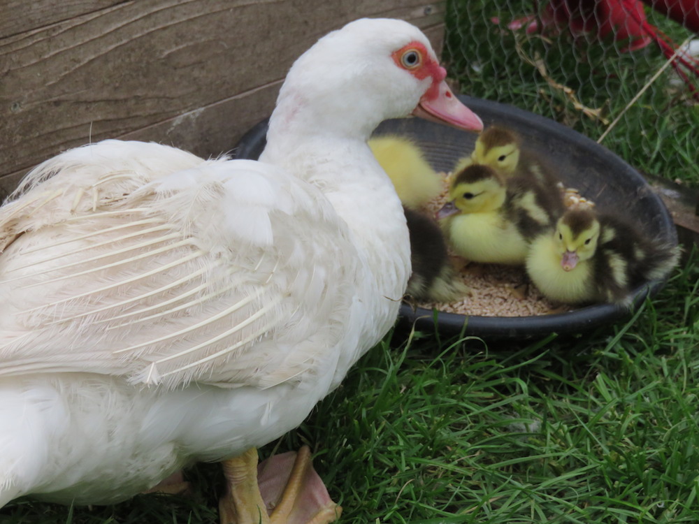 ‚Eine von den weißen‘ hatte beharrlich unter einem Holzstoß gebrütet. In Sichtweite des Entengeheges, aber ganz für sich und alleine mit den Ratten, die des Nachts Eier klauten, saß sie unter einer Euro-Palette, über ihr sicher eine Tonne Gewicht und brütete. Ob das jetzt todesmutig oder dumm war, wage ich nicht zu beurteilen, aber es ging ja gut und ein Holzstoß 2 Hausnummern weiter fiel in sich zusammen.