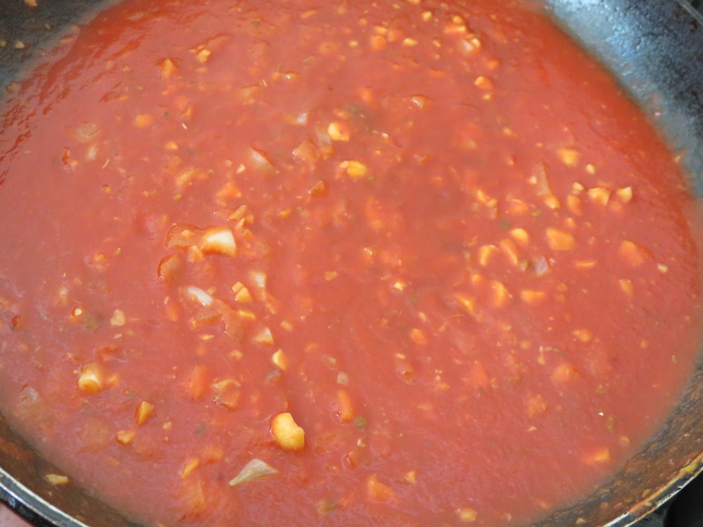 Für die Sauce die Zwiebeln, Paprika und 2 Knoblauchzehen würfeln, in Olivenöl anbraten und mit Tomaten ablöschen. Zucker, Gewürze und Cashewkerne zufügen, aufkochen lassen. Die Sauce auf einem kleinen Backblech oder alternativ einer flachen Auflaufform verteilen, die Zucchinihälften draufsetzen, Pecorino drüberhobeln und in den Ofen schieben. Nach 30-45 Minuten, je nach Größe der Zucchinis ist alles durchgegart und fängt an zu bräunen. Es kann angerichtet werden!