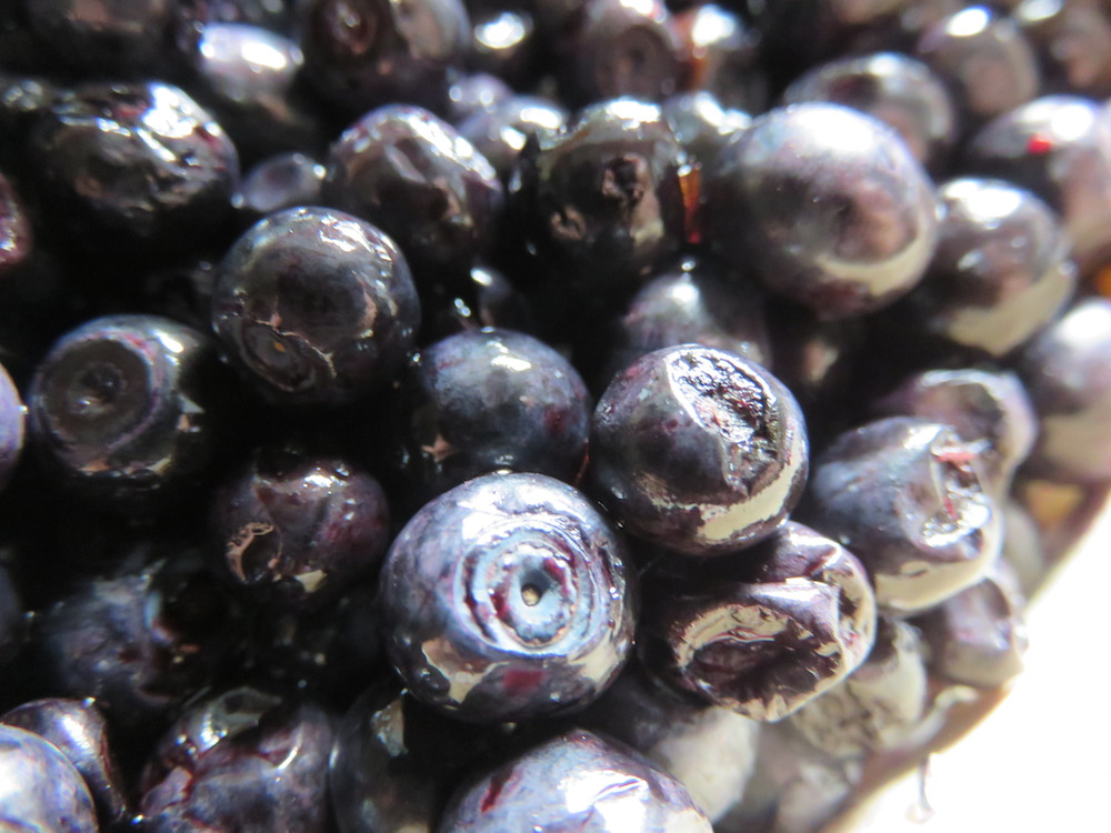 Sonnabend auf dem Markt habe ich echte Waldblaubeeren ergattern können. Leider waren die Beeren recht klein und sauer, kurz schwelgte ich in Erinnerungen an ein Land vor dieser Zeit, wo man wild gepflückte Blaubeeren kiloweise am Straßenrand kaufen konnte – große, aromatische Früchte. Nun, anscheinend ist hier kein so gutes Blaubeerland, aber immerhin: echte Waldbeeren! Nachdem ich bei dem Rezept zum Balsamico aus Kulturblaubeeren schon geschrieben hatte, dass ich vermute, nur mit echten Blaubeeren bekomme man diesen fast schon künstlichen Geschmack hin, den ich gerne erreichen wollte, war klar, dass das gesamte Körbchen Blaubeeren in die Balsamico-Produktion fliessen würde.