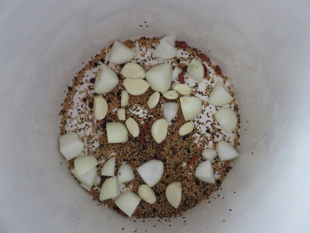 Obwohl es nun einige Tage lang tagsüber nicht mehr über 20° ging, hört die Gurkenschwemme noch nicht auf. Sonnabend haben wir wieder 10l Einlegegurken geerntet und ich habe nochmals einen Gärtopf freigemacht, der an sich für Sauerkraut oder Kimchi vorgesehen war.
