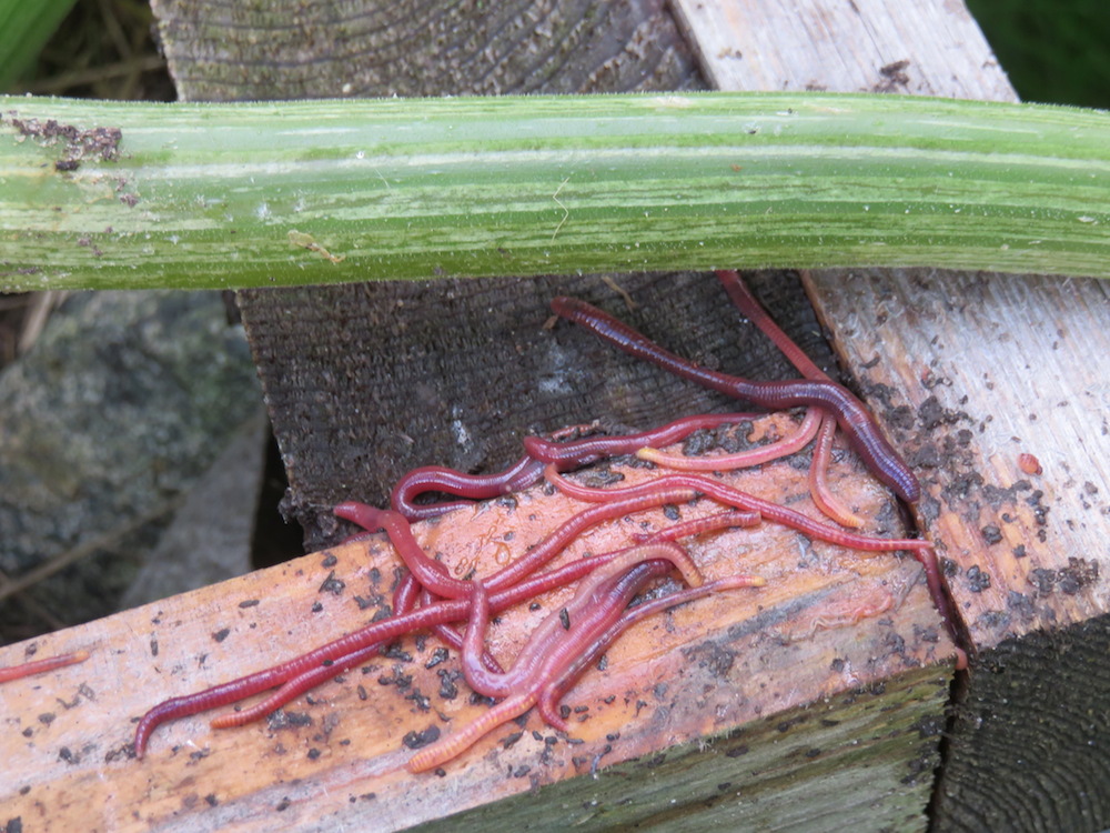 Im Internet gibt es so lustige Dinge wie ‚Anleitungen zum Ernten von Kompostwürmern‘. Hier bei uns im Hochbeetgarten finden wir ganz praktisch heraus, wie man größere Mengen Kompostwürmer ohne Erde, Kompost und sonstigen Ballast zusammenrotten kann.