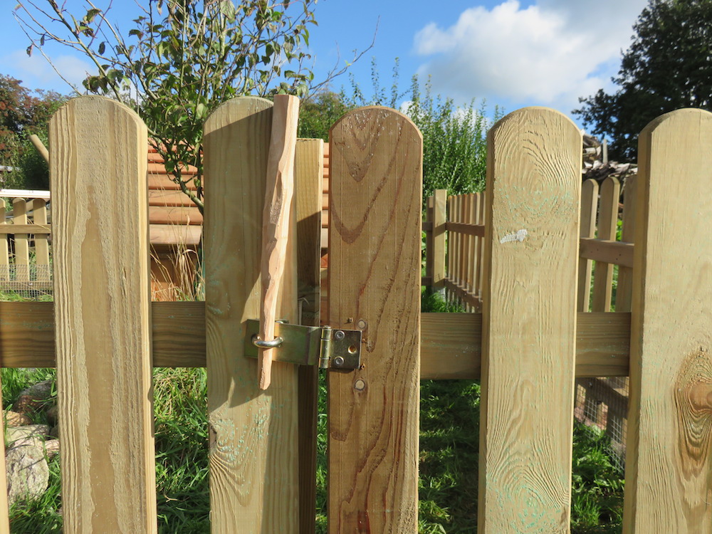 Einfacher wird in jedem Fall die Versorgung der Tiere. Schon heute war ich begeistert von der Möglichkeit, meinen Eimer voll Hasenfutter aus dem Nutzgarten einfach über den Zaun zuzuwerfen. Und die Karnickel haben sicherlich auch mehr Spaß dabei, ein paar Schritte von den Tomaten zur Salatgurke, oder quer rüber zu den Birnen und mal eben ab mittenmang die Äste von den Spieren zu hopsen. Am alten Standort habe ich bei der Futtersuche für die Kaninchen fast meinen ganzen Giersch-Bestand gerodet. An sich nicht so schlau, den können wir auch selber essen!