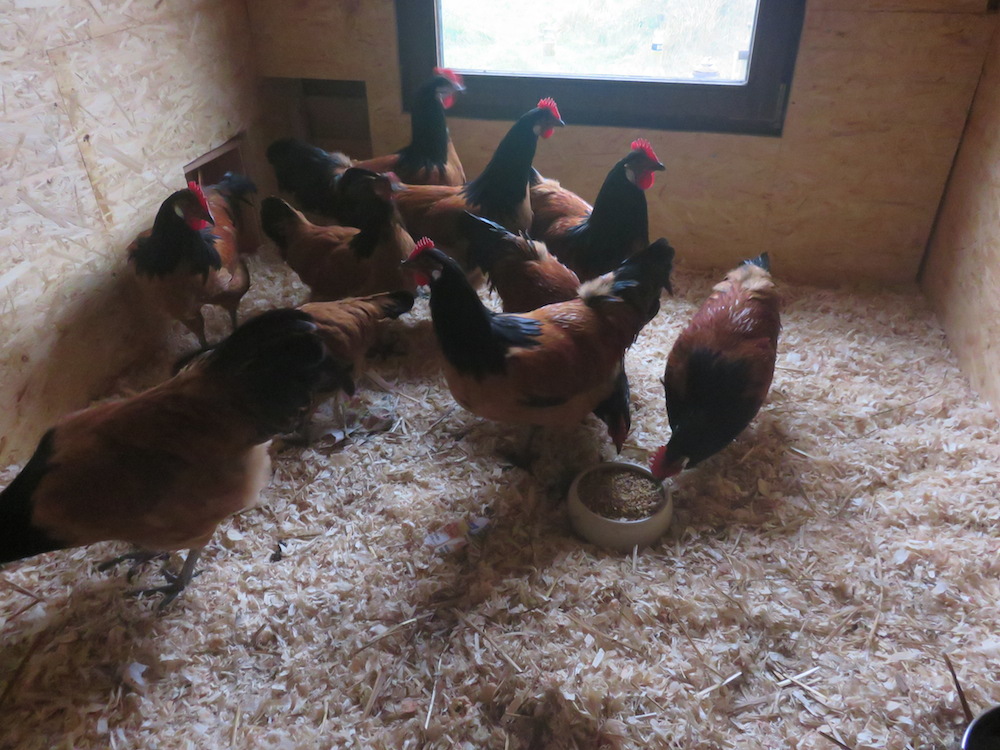 Aber das wird bestimmt gut! Endlich, endlich eigene Eier und – nicht zu vergessen – Rosmarinhuhn, Hühnerfrikassee, Brathähnchen mit Paprika … 😀