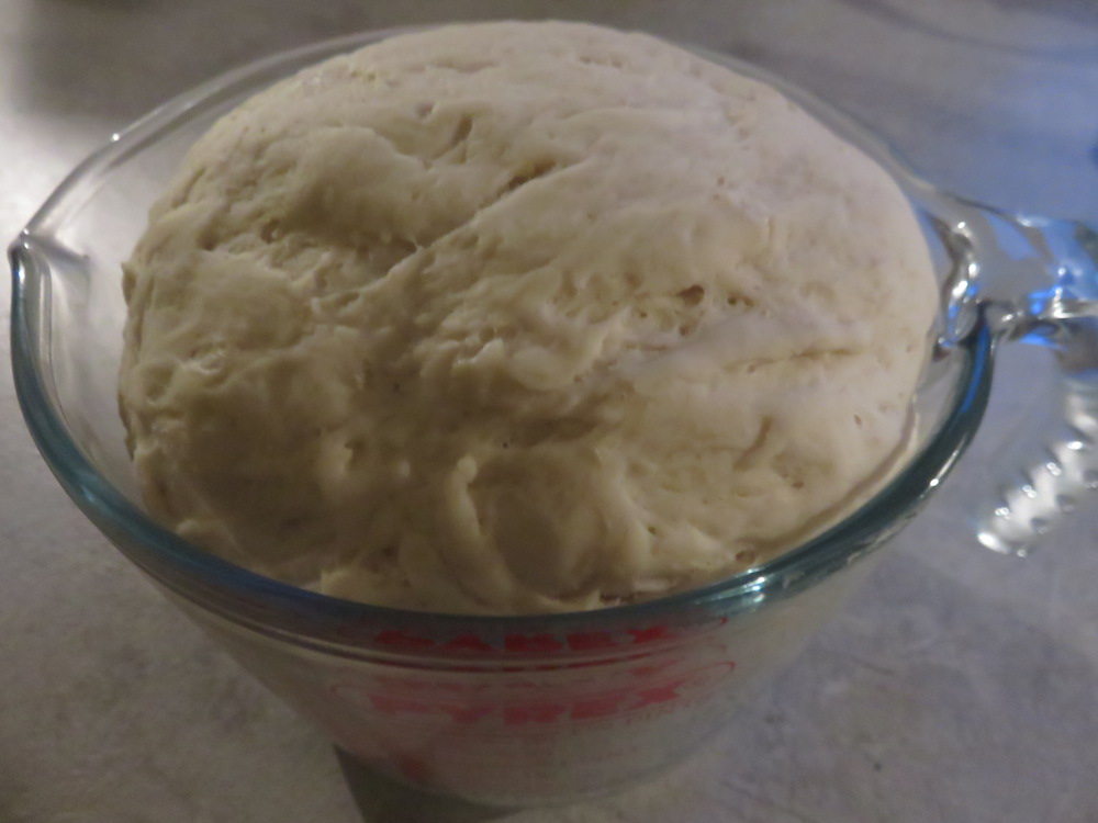 Dieser Klumpen wird nun abgedeckt und an einem warmen Ort 1 Stunde lang gehen gelassen. Dann hat er sein Volumen in etwa verdoppelt.