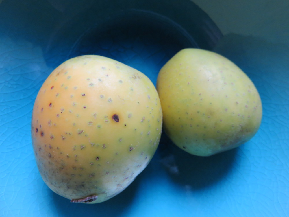 Ich müsste die Wortgewalt und blumige Sprache eines Sommeliers besitzen, um beschreiben zu können, was ich schmecke. Habe ich aber nicht. Mit meinen einfachen Worten gesagt ist die Ananasrenette ein Apfel, so wie ich ihn schätze. Ein sehr ausgewogenes Verhältnis zwischen Süße und Säure, schön feste Konsistenz ohne anstrengend zu sein. Ganz gute Lagerfähigkeit, breites Spektrum an Verarbeitungsmöglichkeiten (aber pur ein Hochgenuss!) ein Duft, der wirklich etwas an Ananas erinnert und auch das Aussehen besitzt Wiedererkennungswert. Die Schale hat kleine Pünktchen und der ganze Apfel ist goldgelb. Man sah die Früchte schon von weitem am Baum auf der Streuobstwiese leuchten – ein tolles Bild.