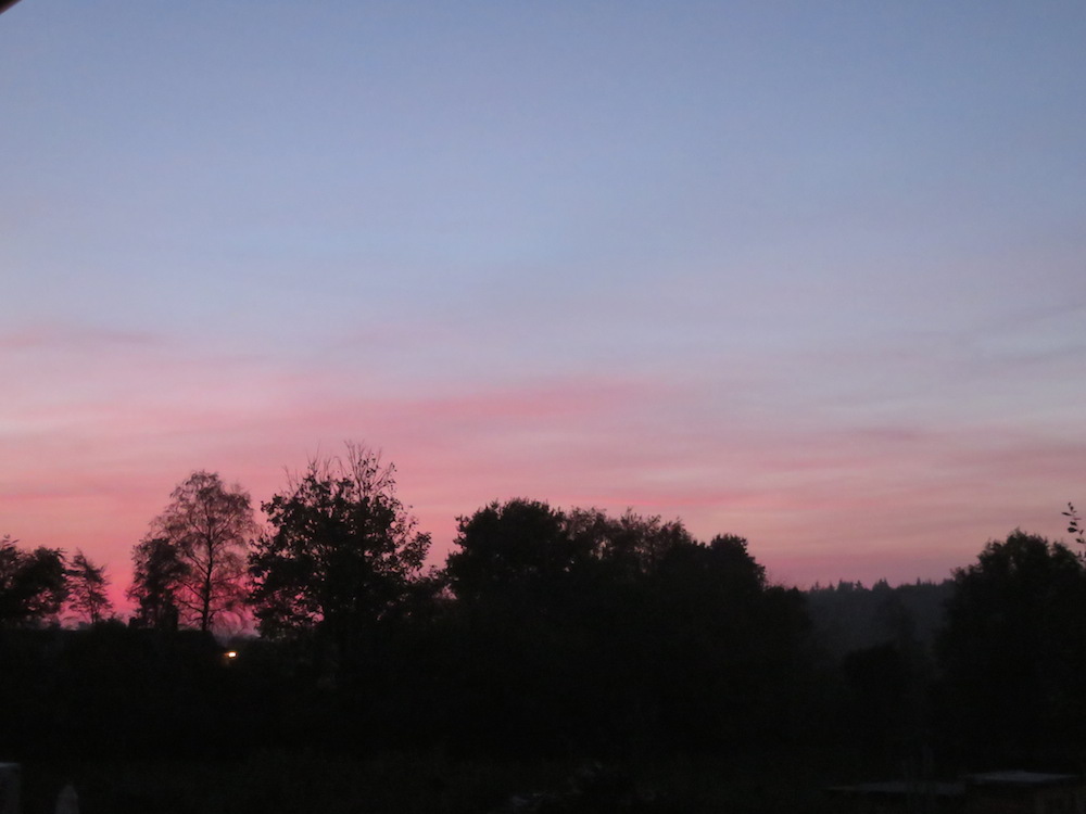 Schnell Freunde angerufen, ob sie kommen möchten, schnell ein einfaches und lagerfeuerkompatibles Essen gerichtet, noch kurz das Abendrot genossen und dann wurde es gemütlich.