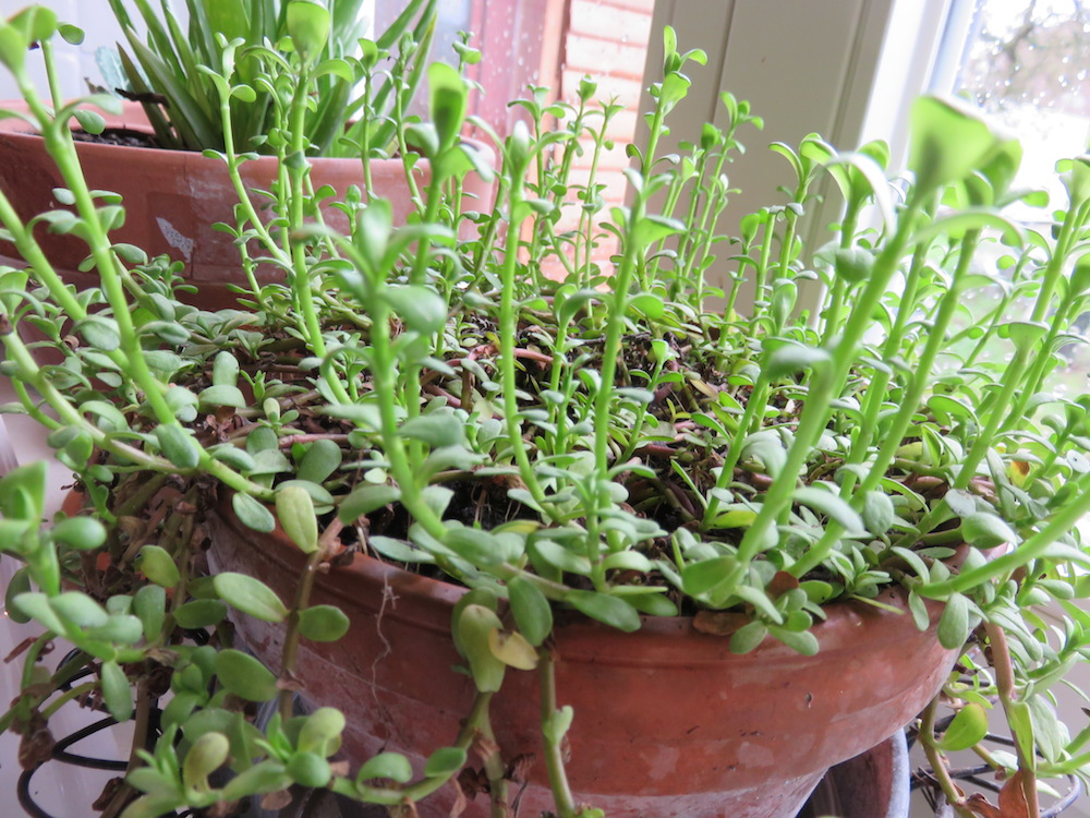 Brahmi ist eine traditionelle, indische Heilpflanze,die in der Ayurveda-Lehre eingesetzt wird, um die Leistungsfähigkeit, Konzentration und das Gedächtnis zu verbessern. Die Inhaltsstoffe Bacosid A & B sollen die Durchblutung und Funktion des Hirns fördern – allerdings soll man für eine Brahmi-Kur 3x täglich einen Teelöffel des Krauts frisch essen oder als Tee aufbrühen. Über eine Dauer von 6-8 Wochen kommt da einiges an Pflanzenmasse zusammen, die verzehrt wird, die Pflanze ist allerdings recht frohwüchsig und mein Eindruck ist, dass sie sich im Haus sogar wohler fühlt als draussen.