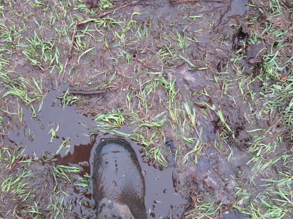 Auch für die Tiere beziehungsweise für die Keimbelastung des Bodens kann diese stehende Feuchtigkeit nicht gut sein und ich mag gar nicht daran denken wie lange es dauern wird, bis die aufgerissene Grasnarbe sich wieder schliesst.