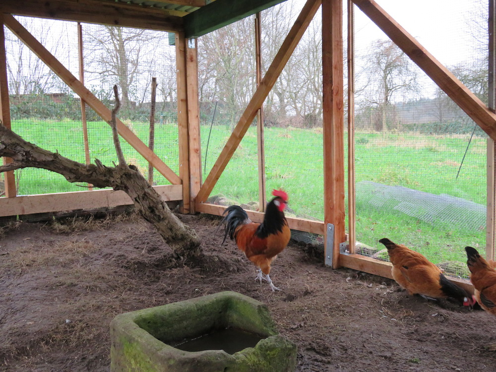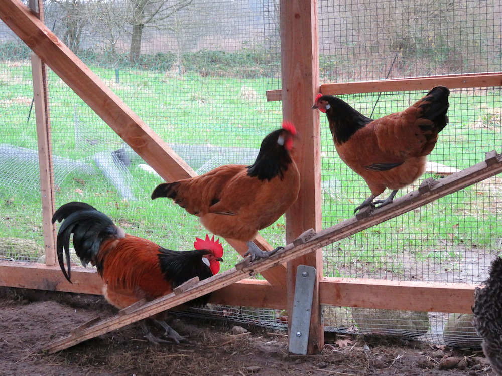 Letzten Sonntag war es soweit und unsere Hühnerschar hat ein neues Oberhaupt bekommen. Der blutsfremde Vorwerkhahn ist planmässig eingezogen und hat sich an sich wacker geschlagen. Am ersten Abend hatte er zwar Schwierigkeiten die Hühnerklappe zu finden und kam nicht auf die Idee, dass man die Hühnerleiter die man morgens herunter gegangen ist auch wieder hinaufsteigen könnte , aber abgesehen von diesem kleinen Faux pas hat er sich direkt gut eingefügt.