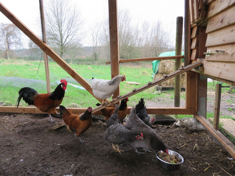 Rechtzeitig zur schönen besseren Jahreszeit soll dann der grosse Auslauf fertiggestellt werden, es besteht die Hoffnung, dass die Hühner sich dann derart über das Gelände verteilen, dass etwas Grün im Freilauf erhalten bleibt. Alternativ müssten wir sonst stellenweise mit Kaninchendraht bespannte Holzrahmen auslegen, sodass die Grasnarbe nur abgefressen aber nicht kaputt gescharrt werden kann.