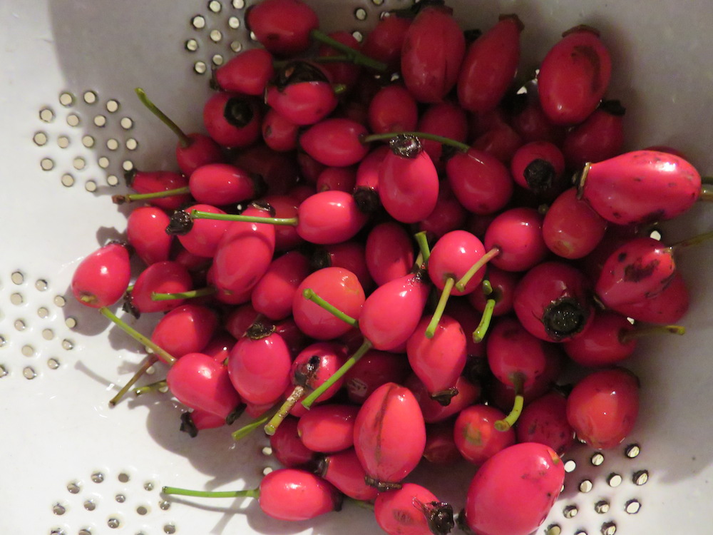 Die ich heute gesammelt habe werde ich teilweise entkernen , den Rest trocknen für Tee . Sind nicht so viele .