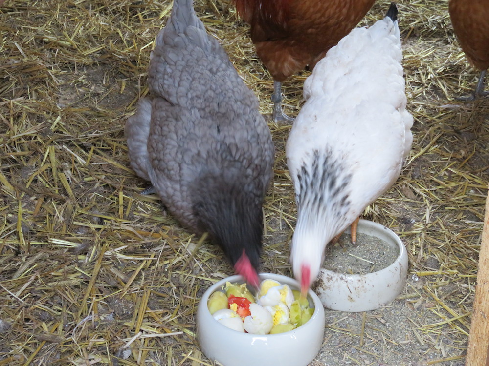 Besonders jetzt, wo es draussen doch nochmal kalt geworden ist, lieben die Hühner die warme Mahlzeit, die – ich gebe es zu – selbst für die meisten Menschen ein Luxusmahl wäre. Wieder ein Kreislauf geschlossen. Fein.