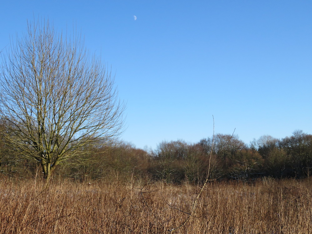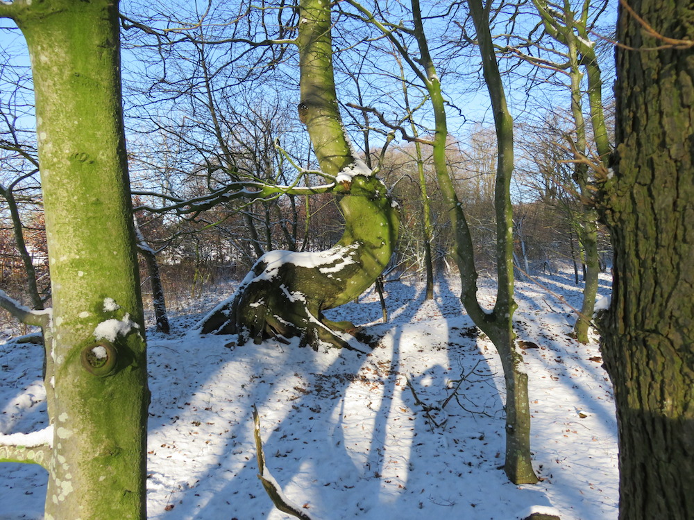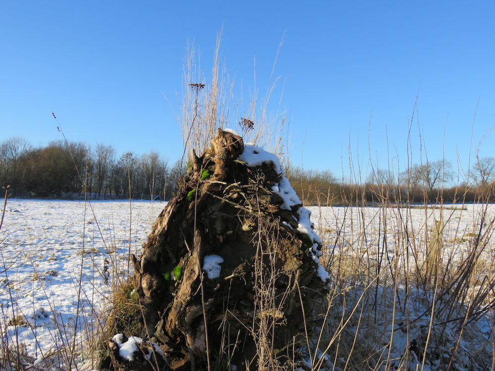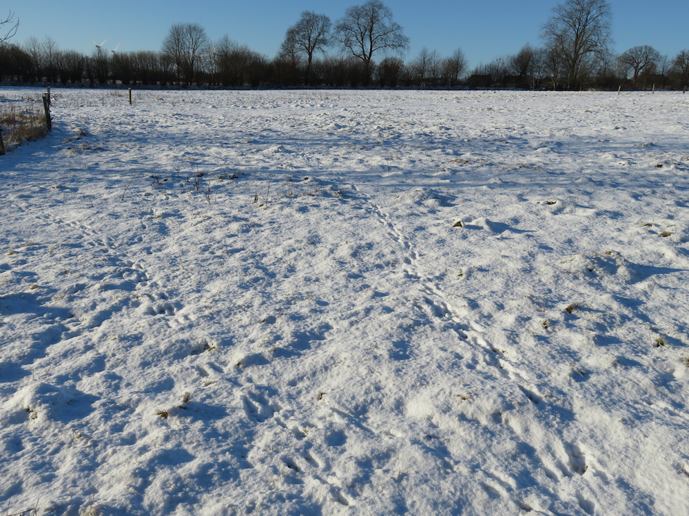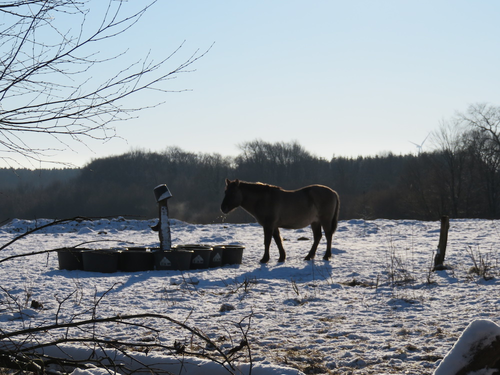 Jetzt, nachdem sich der echte Winter eingestellt hat und flächendeckend Schnee liegt, kann man schön beobachten, wie sich Tiere mit intakten Instinkten Teile ihres Futters suchen. Da wird gemächlich der Schnee beiseite gescharrt, um an das verdorrte Gras zu kommen und die Äste der Bäume geschält. Alle Tätigkeiten sind geruhsamer und energiesparender.