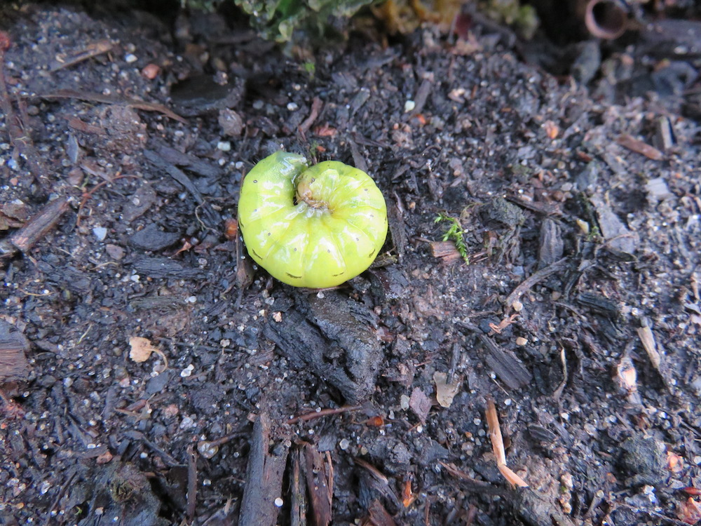 Die Raupen kenne ich, die finde ich beim Frühjahrs-Erdbeerputz auch immer, Deine sind aber wirklich früh dran – gefährlich, denn man erwartet sie noch nicht am Gemüse und schon können sie sich satt fressen ;-).