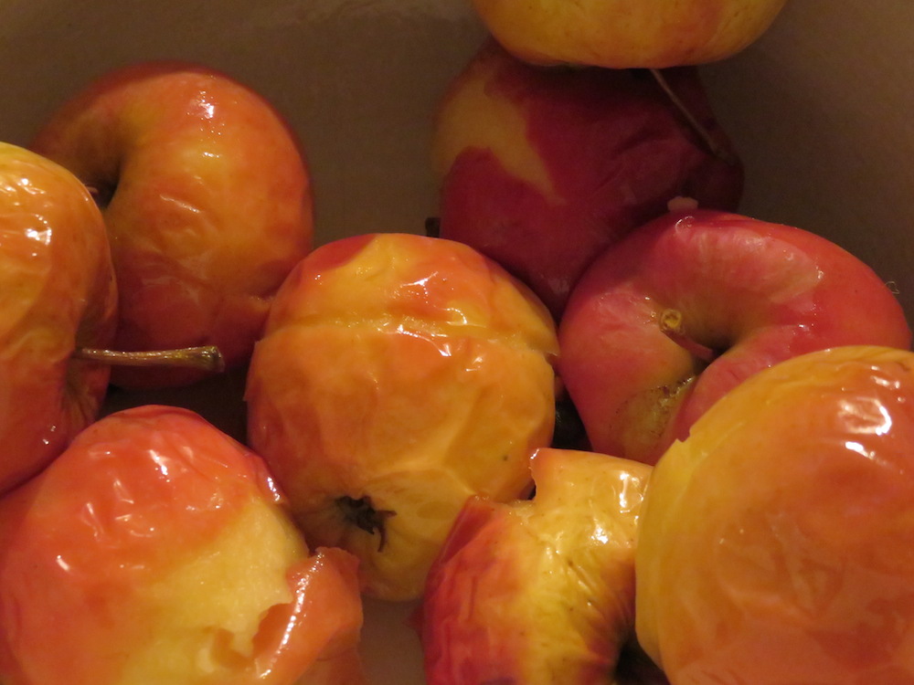 Im Original heisst das Rezept ‚Äpfel in pikantem Apfelsaft‘, da bei der Verarbeitung aber ein Apfelsirup das Ergebnis ist, habe ich es umbenannt. Der Apfelsirup kann eingedickt als Grundlage für die Sauce benutzt werden.