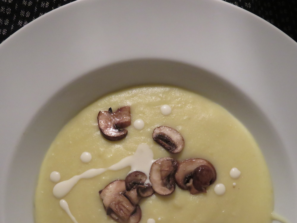 Nachdem die Masse passiert war, noch Sahne untergerührt und das Ganze mit gebratenen Champignons serviert. So schlicht und einfach die Suppe war, war sie doch voller erdiger Aromen aus dem eigenen Garten, wärmte gut von innen und machte zufrieden.