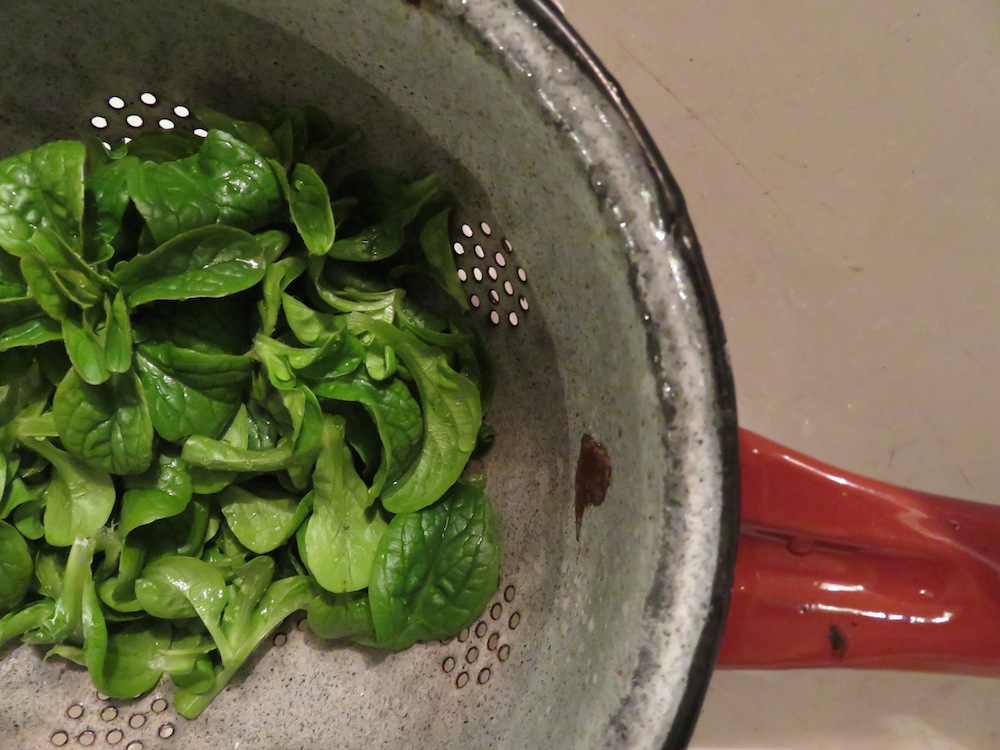 Dazu passt laut Rezept Rucola. Rucola haben wir nicht, aber Feldsalat aus eigener Ernte mit Sonnenblumenkernen und Heidelbeer-Balsamico war ebenso perfekt.