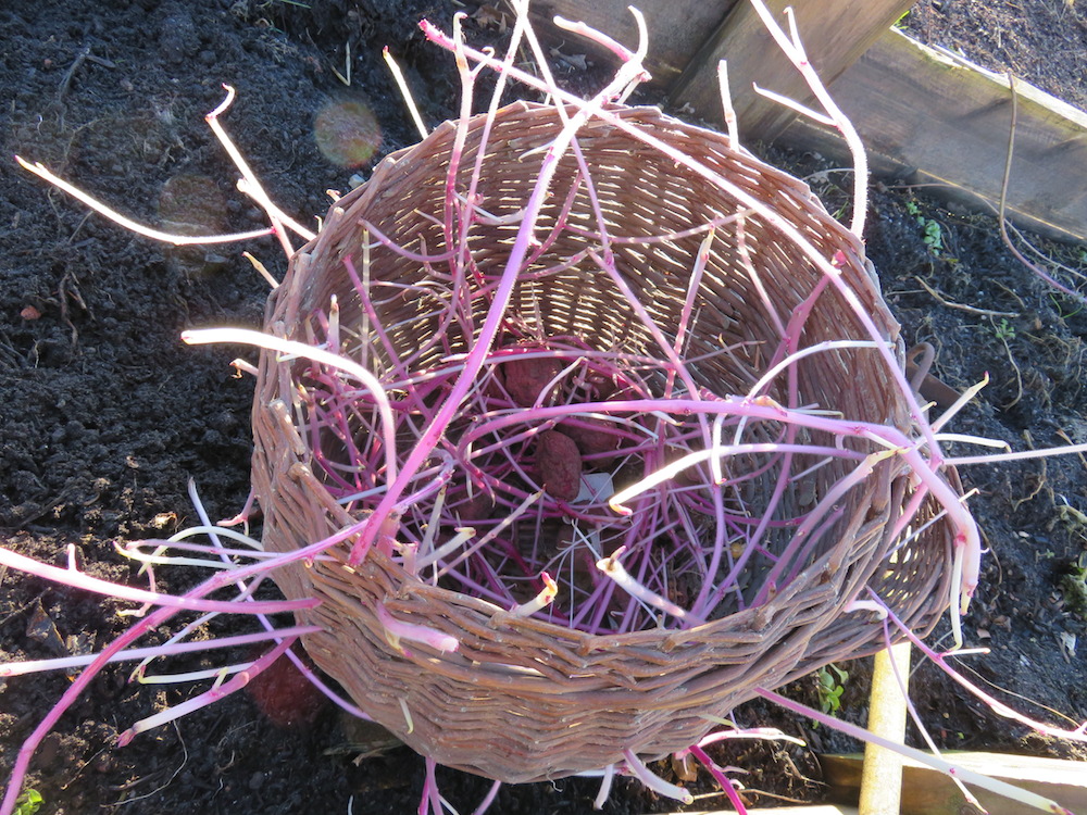 Nachdem ich mich also mit dröhnendem Schädel, kratzigen Hals und Würfelhusten aus dem Bett erhoben hatte, zog es mich direkt in den Garten. Immerhin waren die Frühkartoffeln ‚Roter Erstling‘ schon äusserst professionell vorgekeimt *hust* und auch Salate, Spinat, Mangold, Rettich und anderes Kleinzeugs konnte draussen ausgesät werden.
