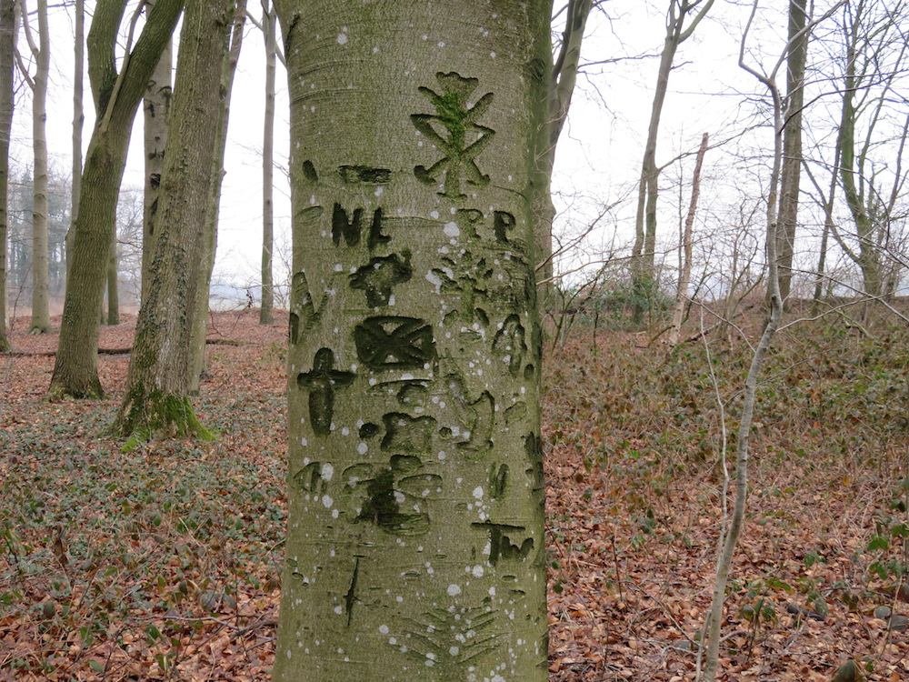 Wie man sieht, benutzen die Indigenen hier zu Kommunikationszwecken die primitive Kunst der Lebendholzschnitzerei. Alt hergebrachte Runen und christliche Symbolik überlappen sich bereits, aber der Sinn wird schnell klar: ‚Kein Bärlauch hier! Geh weg!‘