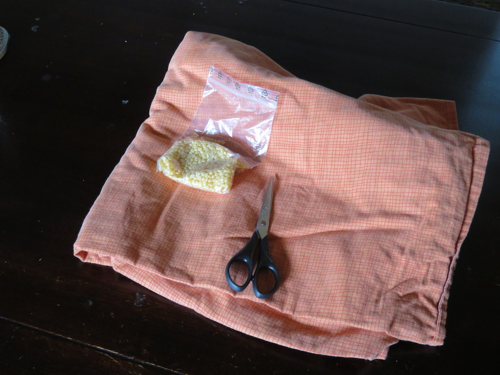 Ich nahm also (beim ersten Versuch) einen alten Bettbezug aus 100% Baumwolle, der irgendwie in diesen Haushalt kam und Bienenwachskügelchen und legte los.