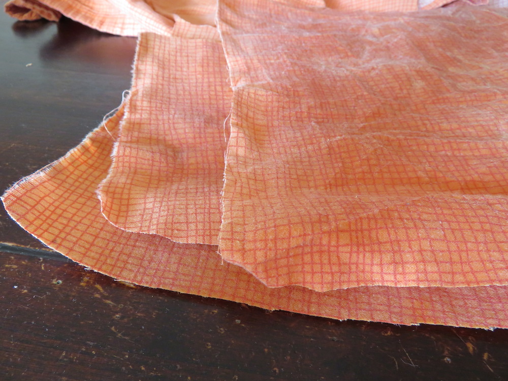 Ursprünglich wollte ich einen Bio-Baumwollstoff für diesen Zweck kaufen, aber ich finde, dass ein alter Baumwollstoff sich ebenso gut eignet. Durch das häufige Waschen – hoffentlich ohne Weichspüler! – dürften ohnehin keine Schadstoffe mehr enthalten sein und nachhaltiger ist die Weiterverwendung von vorhandenem ohnehin.
