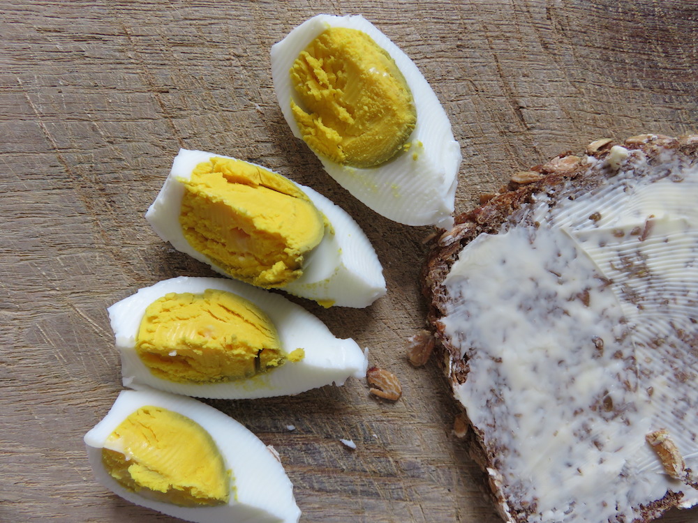 Seit unsere Hühner wirklich frei laufen hat das Eigelb eine sehr satte orange Farbe bekommen, nicht zu vergleichen mit dem Orange, welches man gelegentlich (auf Fotos von manchen Foodblogs) bei konventionellen Eiern sieht.