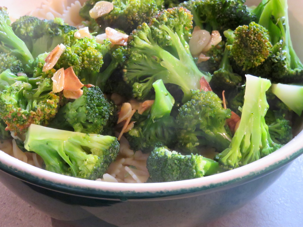 Farfalle werden al dente gekocht, Brokkoli-Röschen ebenfalls, darüber kommt der Knoblauch mitsamt dem Öl und gerne auch noch extra (nach dem Braten, logisch) natives Olivenöl. Vielleicht ein wenig Parmesan darüber und fertig ist ein schnelles, gesundes Mahl. Die Mengen empfehle ich selber nach Appetit und Akzeptanz des sozialen Umfelds beziehungsweise der sozialen Erwünschtheit falls man darauf eingehen möchte (Foetor ex ore aufgrund von Knoblauchkonsum) zusammenzustellen. Ich benutze sehr viel Knoblauch und freue mich des Lebens. Nur vielleicht nicht vor dem Zahnarztbesuch.
