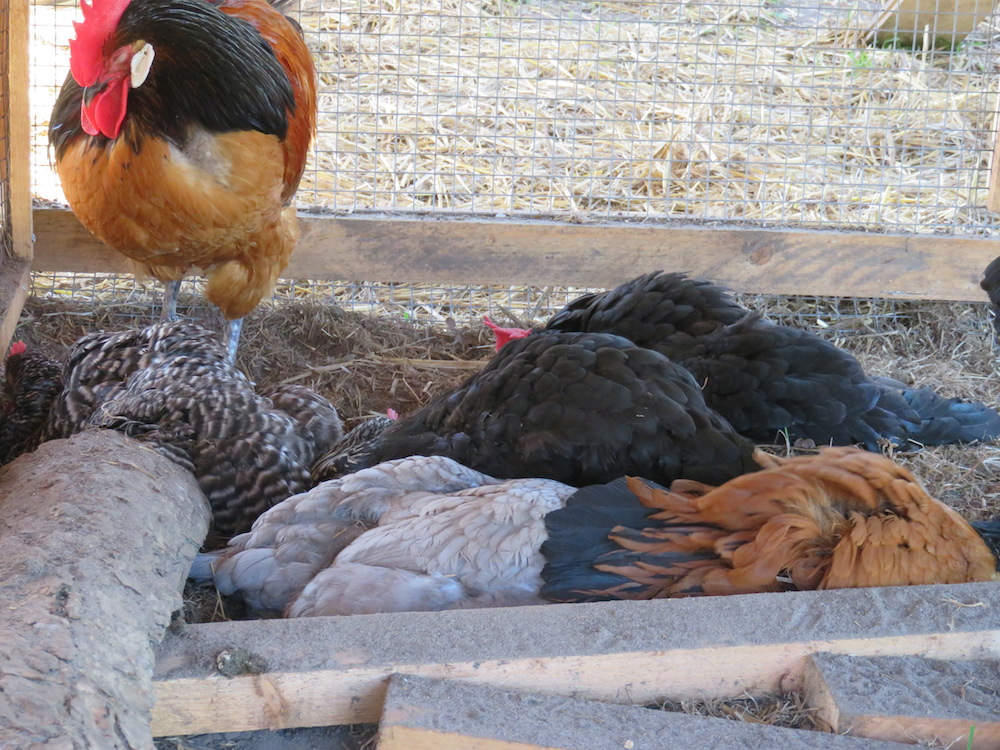 Und schlafende Hühner sehen wirklich tot aus, finde ich auch immer. Seit ich die tote Marianne in dem Legenest gefunden habe, finde ich den Anblick von Hühner-Augenlidern auch etwas … befremdlich.
