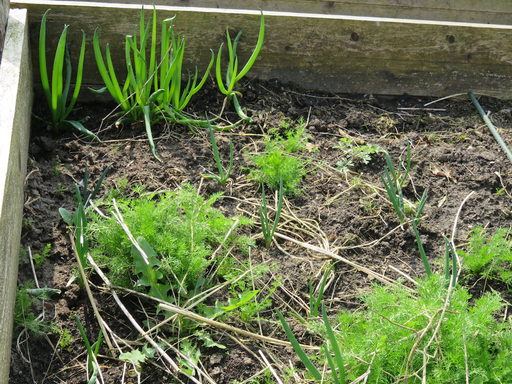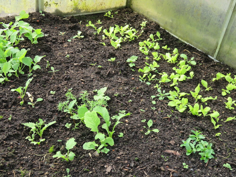 Irgendwas ist jedes Jahr anders und so haben wir dieses Jahr zwar hübsche Salat-Keimlinge im Frühbeet, aber letztes Jahr konnten wir um diese Zeit bereits Kopfsalat aus dem Frühbeet ernten. Schade, aber immerhin gibt es hier soviele Baustellen gleichzeitig, dass man schonmal das Vorziehen von Salat verschwitzen kann, immerhin habe ich draussen im Frühbeetkasten an die Aussaat gedacht.