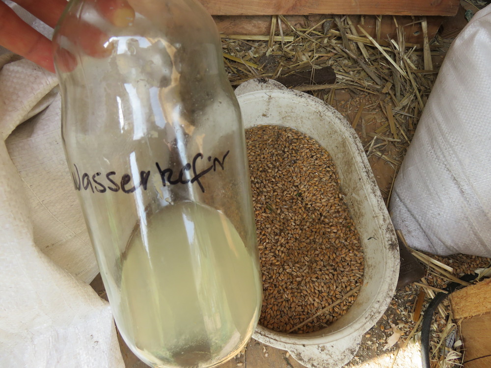 Der nächste Tierversuch baute darauf auf und beinhaltete das Fermentieren der Bio-Weizenkörner, die wir zufüttern. Dieses Mal verwendete ich den Wasserkefir pur. Ergebnis: der Napf war ratzekahl leergefressen. Schön.