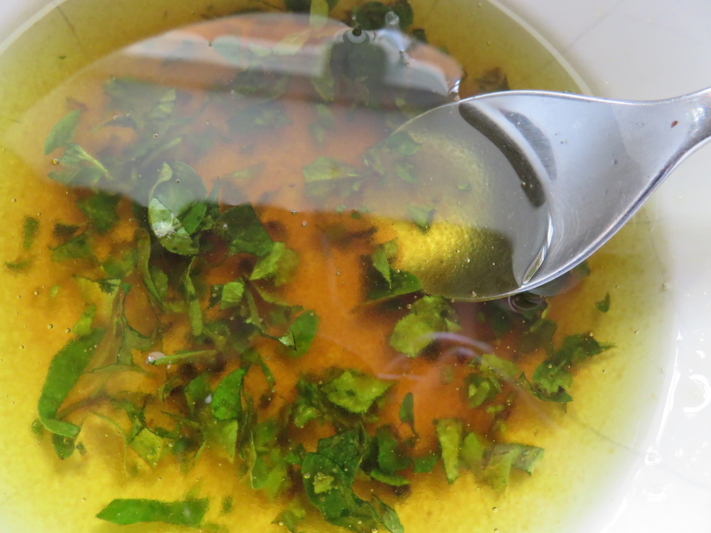 Und im Gegensatz zum Joghurtdressing, wo getrockneter Oregano zum Einsatz kommt, wird er hier frisch verwendet.