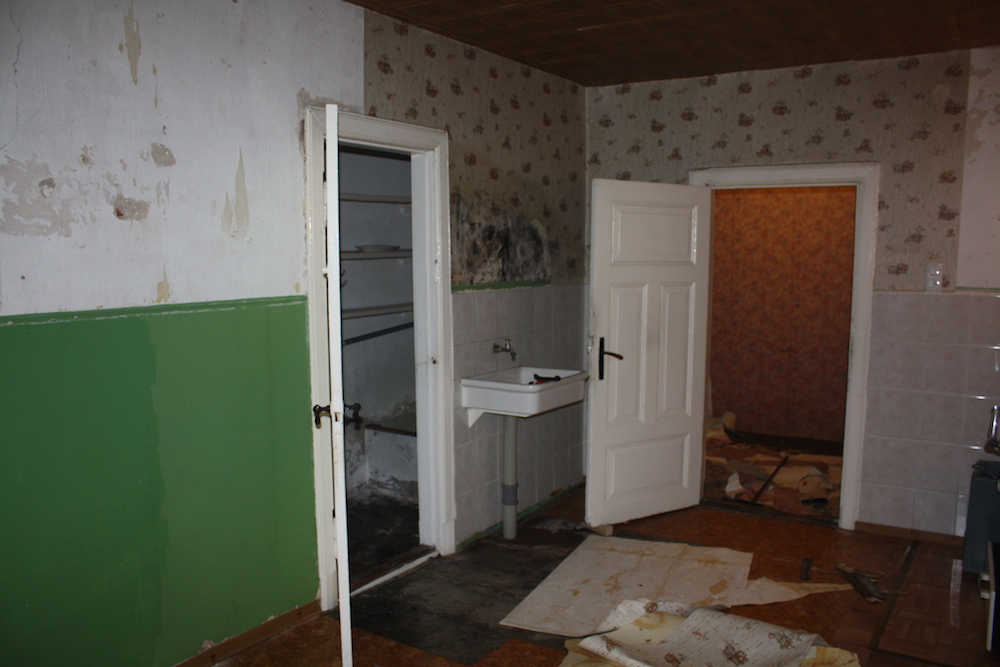 PVC am Boden, Plastik-Paneele an der Decke, alte Häuser können soviel Charme haben. Oder eben auch nicht. Die gute alte Küchenhexe tat hier bis vor 2 Wochen ihren Dienst und wurde nun an Freunde verschenkt, die daraus eine Sommerküche bauen wollen.