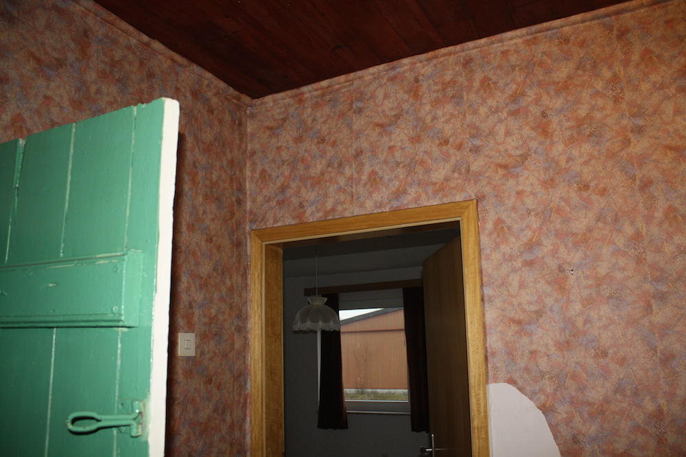 Hier blickt man ins Schlafzimmer – sofern man die Augen von dieser wunderhübschen Tapete abwenden kann. Die Deckenvertäfelung ist übrigens nicht dunkelbraun lasiert gewesen. Ich weiss, dass es so aussieht, aber glaubt mir, sie war es nicht.