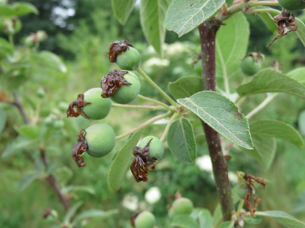 … unter dem Zierapfel. Bei den letzten mittelholsteiner Apfeltagen konnte ich nicht ohne Zieräpfel, Mirabellen und Nashi nach Hause gehen.