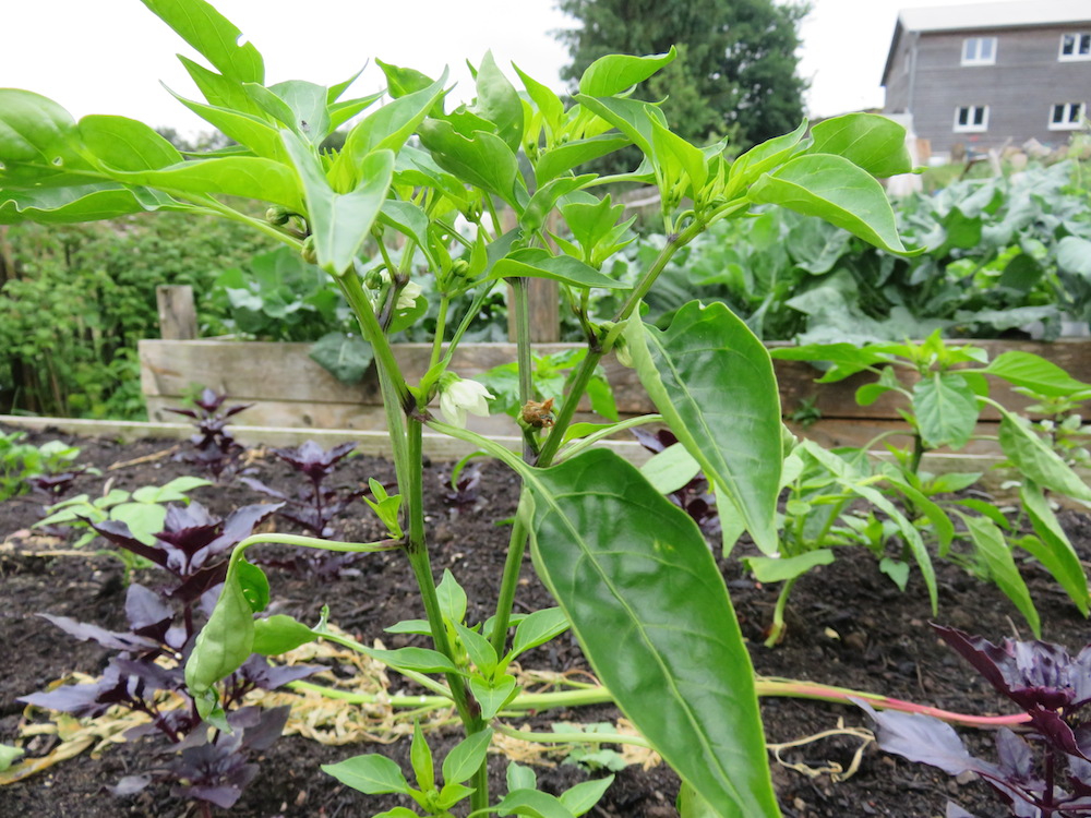 Paprika, dieses Jahr auch hier Kleinwuchs wegen Vernachlässigung, mangelndem pikieren, mangelndem Dünger und spätem Auspflanzen.