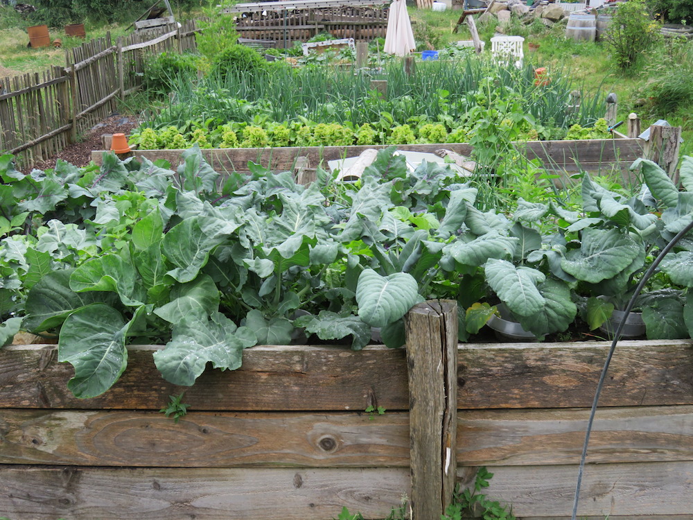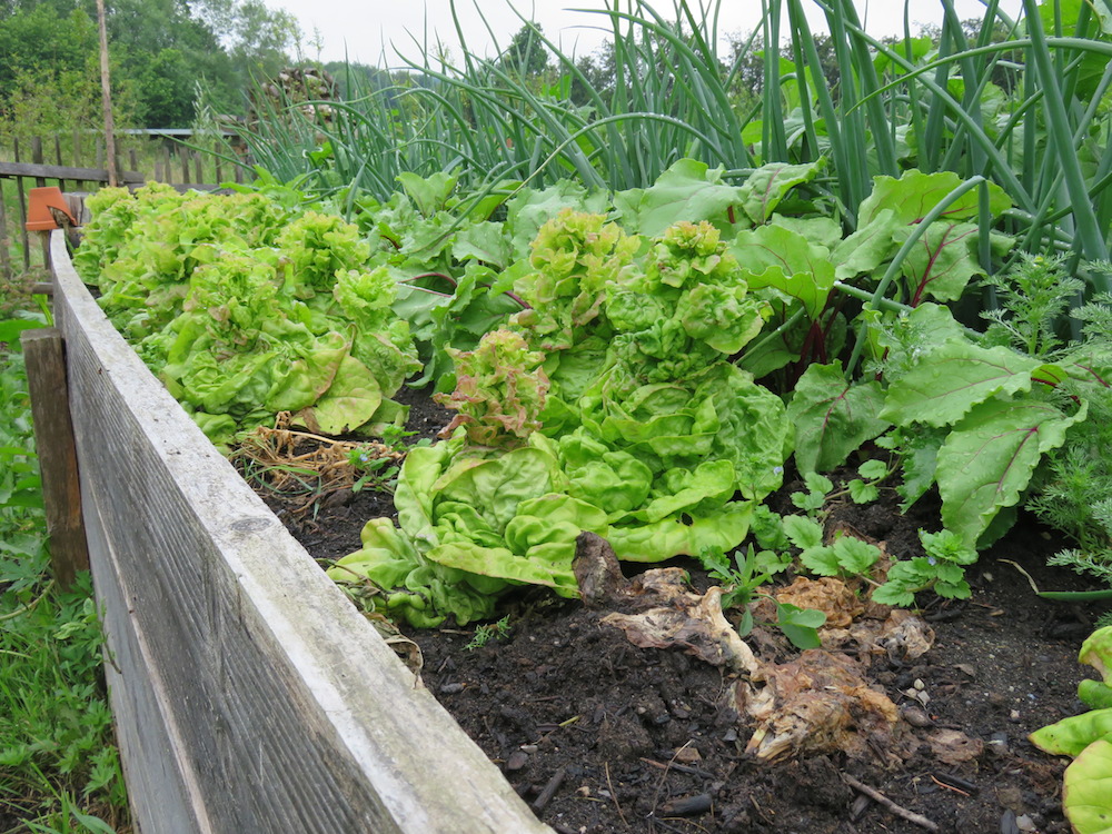 Oh, ich habe vor 2 Wochen Gartenfreunde besucht, die einen eher dunklen Waldgarten haben und dort war fast alles weiter (obwohl es letztes Jahr HIER im Gegensatz zu dort überbordernd gewachsen ist). Dann sah ich letzte Woche Fotos auf einem anderen Gartenblog und die Bilder sahen aus wie aus dem Spätsommer – fast alles fertig: Porree, Kohl .. an sich alles.