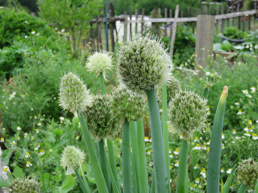 Zwiebeln und Schalotten stehen gut da dieses Jahr – wenn man von der Blüte absieht.