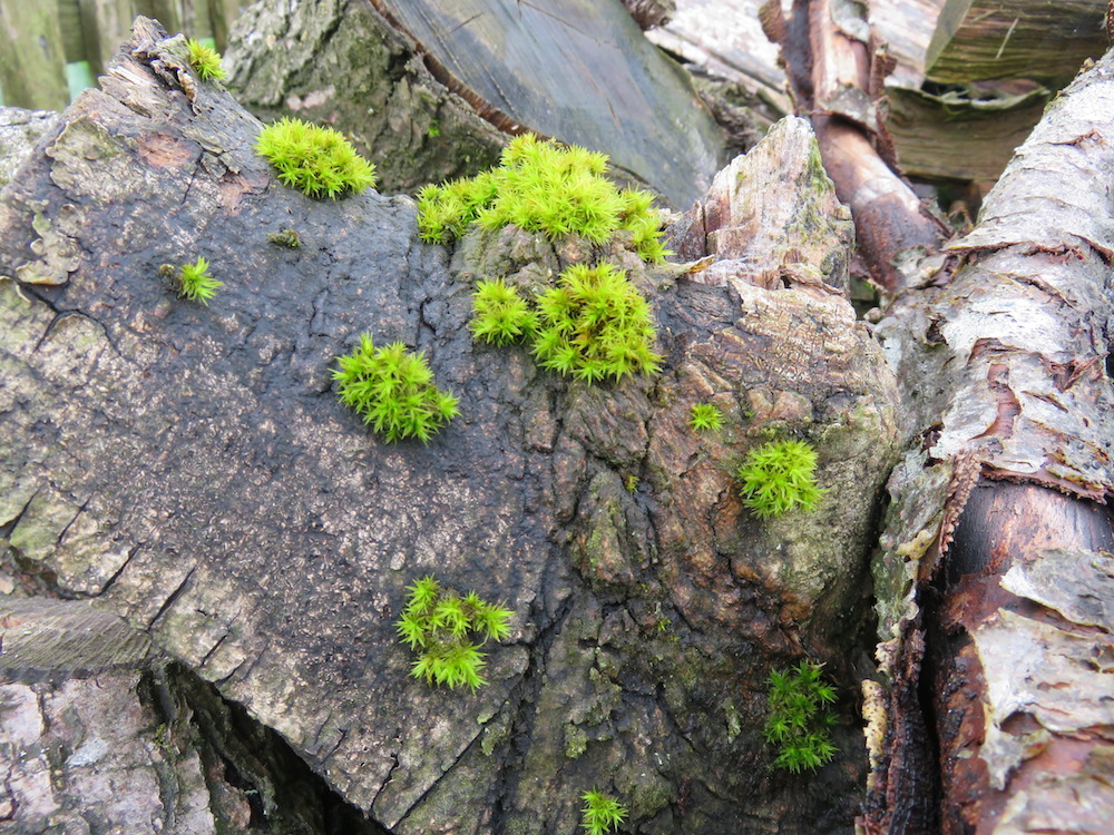 Moos am Brennholz. Hübsch aber ungut.