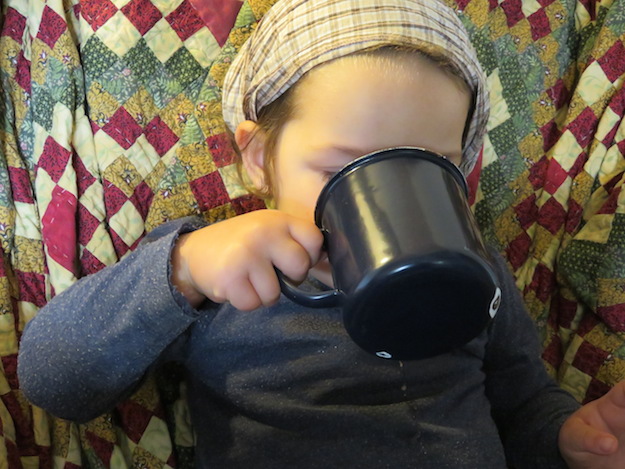 Dazu hätte eine amische ‚Rainy Day Milk‚ gepasst aber es war keine Butter im Haus, dafür aber Appetit auf Kakao vorhanden. Also habe ich einen Gewürz-Kakao als schokoladiges Substitut für die amische Milch gemacht.