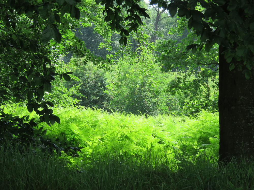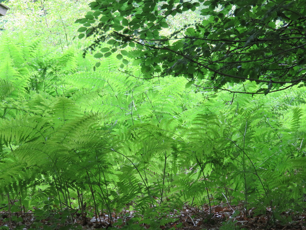 Einen Sonnenwendstrauß haben wir zwar nicht gepfückt, aber immerhin ein paar Farnwedel gepresst. Farne gehören zum Mittsommer und hier gedeihen sie besonders prächtig.