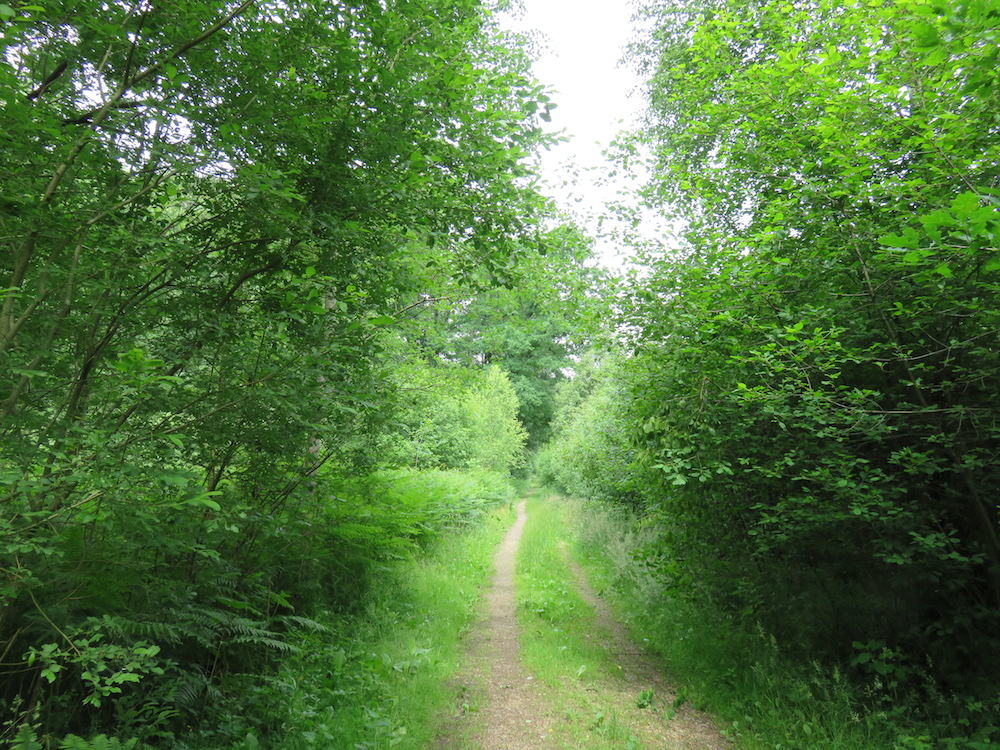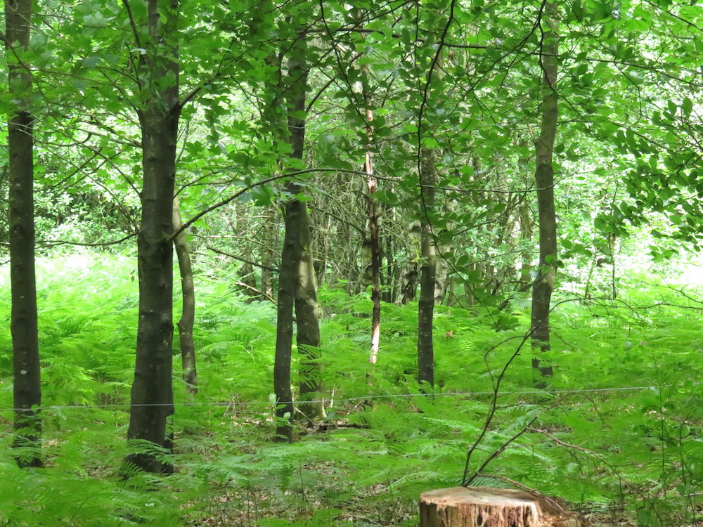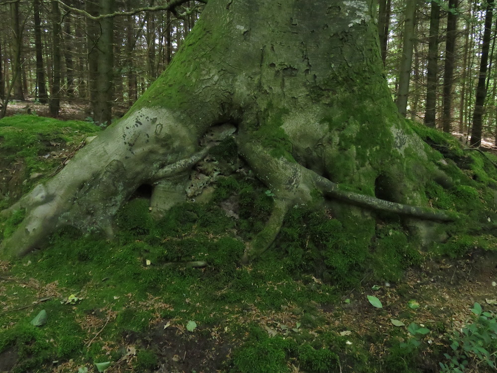 Lässt man die halboffene Weidelandschaft, eine uralte Kulturlandschaft, hinter sich, geht es entlang eines alten Hohlweges durch ein Stück Wald mit Resten von Forst, der aber nicht sehr gesund aussieht. Ein Verlust wird es nicht sein, die Plätze von kränkelnden Fichtenmonokulturen werden von Buchen, Eichen und Birken eingenommen.