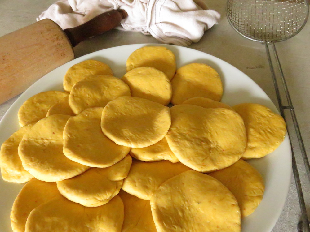 Das Rezept ist traditionell und unterscheidet sich an sich nicht von denen, die ihr auf spanisch finden könnt. Ein Teil Kürbis auf zwei Teile Mehl, etwas Hefe, Butter und Salz sowie jede Menge Öl zum Frittieren. Das Rezept für die Chancaca ist auch sehr fein.