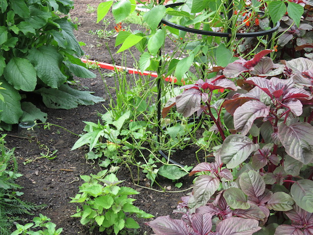 Feuerbohnen, Oregano und Zitronenmelisse wurden radikal abgefressen. Was schlecht ist, denn so freigiebig kann ich damit nicht sein. Unsere Stangenbohnen sind dieses Jahr nicht gekommen, die Körnerbohnen schlecht und die Buschbohnen hat die Gärtnerin verschwitzt zu säen – die Feuerbohnen sind also unsere grosse Hoffnung. Oregano kann man nicht genug haben und da das Leben hier derzeit in weiten Teilen nicht nur idyllisch sondern auch sehr stressig ist, kann ich auch Zitronenmelisse nicht genug haben. Hätte es den roten Meier gefressen, der direkt daneben steht, hätten wir verhandeln können aber so ging die Jagd los. Jagd, genau, denn plötzlich wollte Madame nicht mehr auf den Arm.