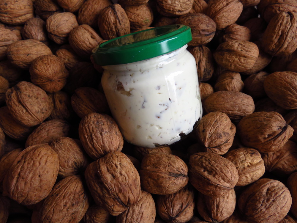 Es folgten lange Jahre ohne Walnusskäse – bis vor einiger Zeit beim Samentausch-Treffen der norddeutschen Frunslüt Salmandra ein Glas voll selbst gemachten Walnuss-Frischkäse mitbrachte.