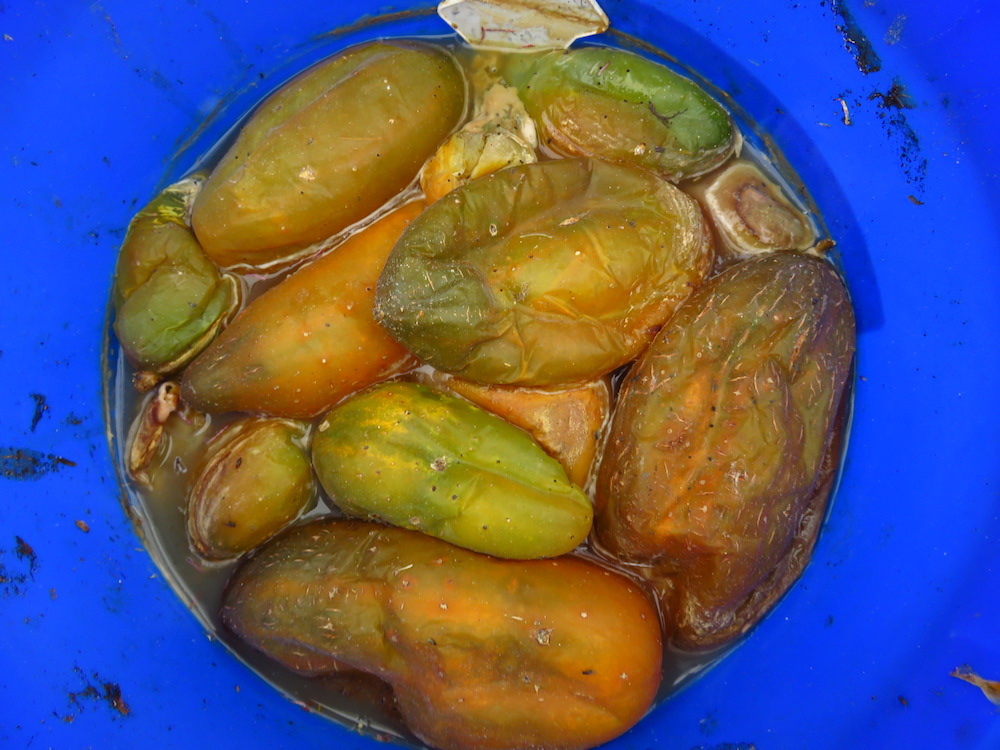 Eine kleine Erkenntnis aus der Praxis kurz notiert weil es immer Menschen gibt, die genau das wissen wollen und weil ich garantiert irgendwann nach der Haltbarkeit roher, ausgereifter Einleger gefragt werde, es vergessen haben werde und mal wieder auf die Webseite verweisen muss. Ich baue als Einlegegurken die Sorten ‚Extra Early Green Prolific‘ und die ‚Vorgebirgstraube‘ an. Beide sind für Hausgärten und für Bioanbau von meiner Seite zu empfehlen, auch im feuchten und niederschlagsreichen norddeutschen Klima habe ich an 2 Pflanzen mehr als genug zum roh verwenden, einmachen, einlegen, verschenken und tauschen und es bleiben immer noch Gurken für die Tiere übrig. Sogar für interessante Tests wie diesen habe ich noch 10 Kilo abgezwackt.
