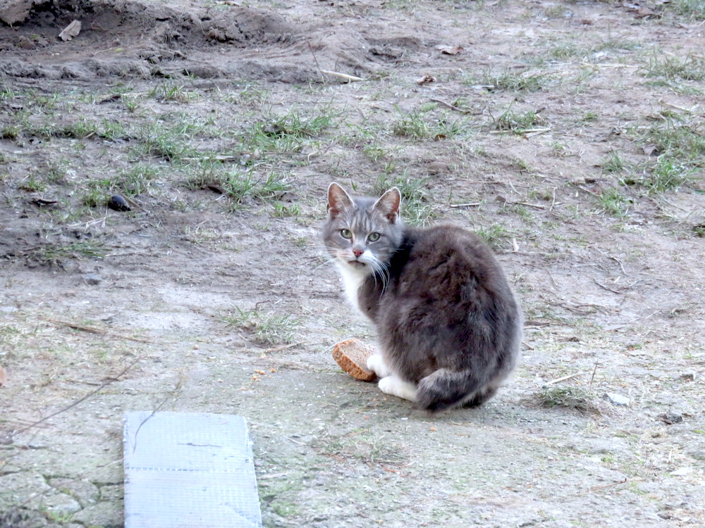 Nach etwa 7 Tagen hatte die Katze es bereits drauf, mich vom Windfang aus zu fixieren und zu hypnotisieren „Du musst mich füttern! Du musst mich füttern! Komm jetzt raus und fütter‘ mich!“ (Sonst klau‘ ich das Hasenbrot)
