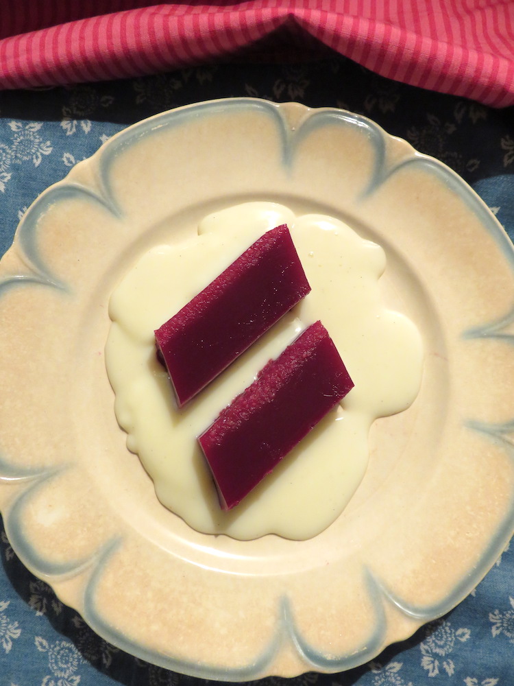 Ganz schön retro und natürlich selbst gemacht: heute gab es einen Wackelpudding aus eingelagerten Zutaten. Kurz habe ich überlegt, ob ich eine süße Suppe aus der Flasche Blaubeersaft machen sollte, die ich für den baldigen Verzehr aus der Speisekammer entnommen hatte – aber Eltern von Kleinkindern werden verstehen, dass ich davon erst einmal Abstand nahm. Süße Suppen wie zum Beispiel Fliederbeersuppe mit Grießklößchen sind typisch norddeutsch und lassen sich sowohl frisch, als auch prima aus eingelagerten Zutaten herstellen.